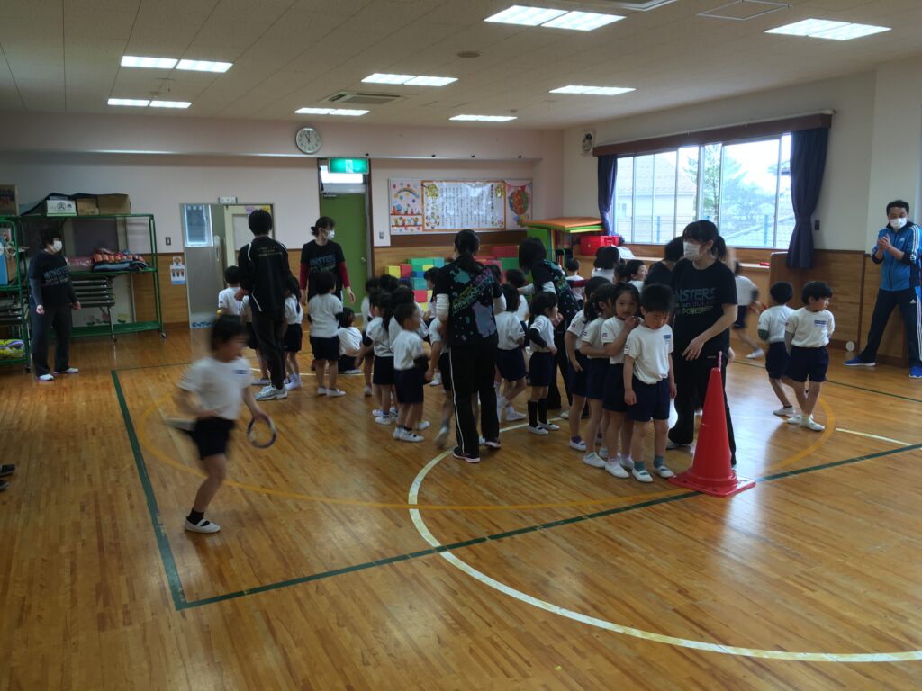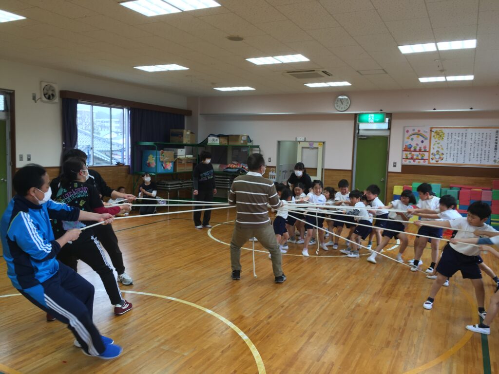 3月2日(火)8:30~ 福島県伊達市梁川中央保育園で幼児の健康・体力づくりの支援事業を丸山育英会の支援により実施しました。この事業は、年に2回幼児の体力チェックの結果を基にバランスの取れた運動能力と体力を目指して実施しているものです。地震・水害の連続で外あそびの時間が十分とれない子どもたちに運動能力チェック→運動あそびのサーキット→集団あそびのメニューを提供しています。まもなく小学校へ進学する年長児は、チェックの結果から四つ這背走、連続跳越、スイング走が心配でした。小学校入学後転倒による怪我がなければよいのですが、そこで障害物リレー、サイコロキック、玉入れ、アタック・ファイブ、オセロ、多点リレー、サークル綱引きで残された1か月、あそびながら少しでも改善出来ることを願っています。