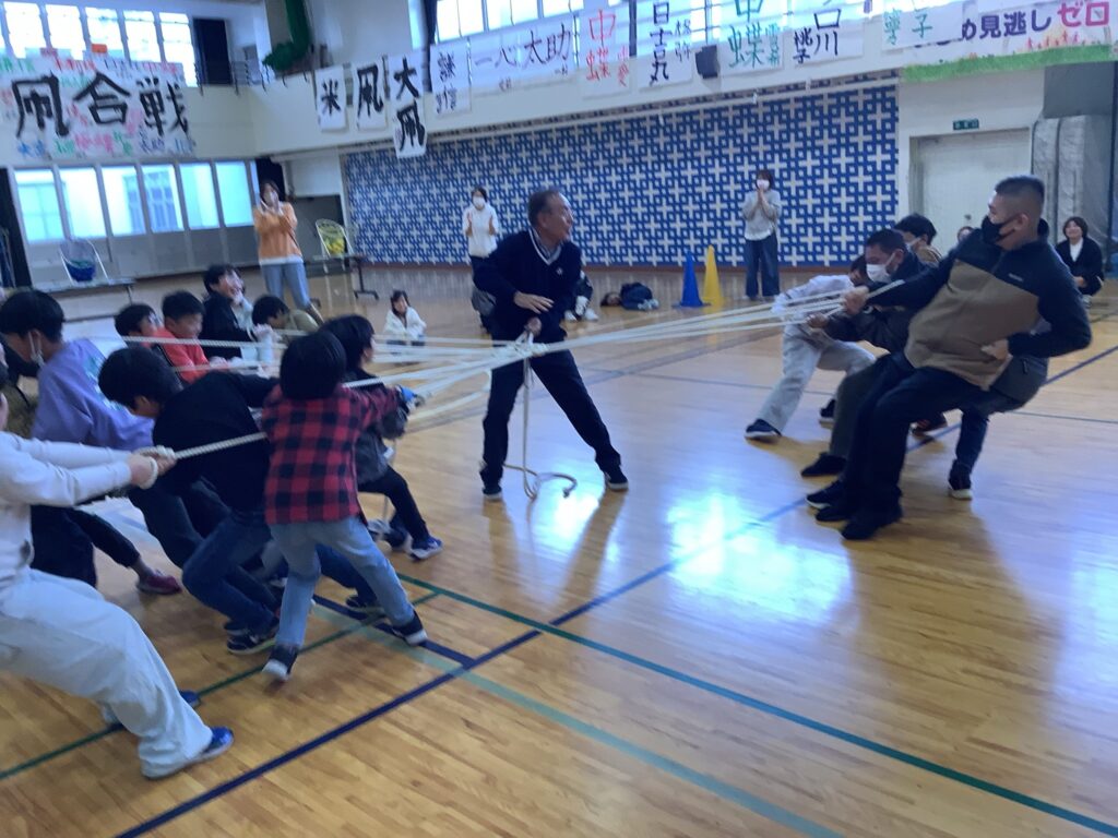 11月26日(水)13:00~ 南区の味方小学校4学年PTAのご要望で運動会を開催しました。限られた時間でしたが親子ともども大いに盛り上がりました。特に男子対父親、女子対父親のグルグル綱引きでは、メイン種目にふさわしい力の入った展開になりました。保護者の皆様は、「子どもの力を見直した。」とびっくりしていました。「お父さんここで負けるようでは、困ります。」、「まだまだ、頑張っていただきたいと思います。」、「今夜は、晩酌抜きです。」お疲れさまでした。掲載が遅れてすみませんでした。