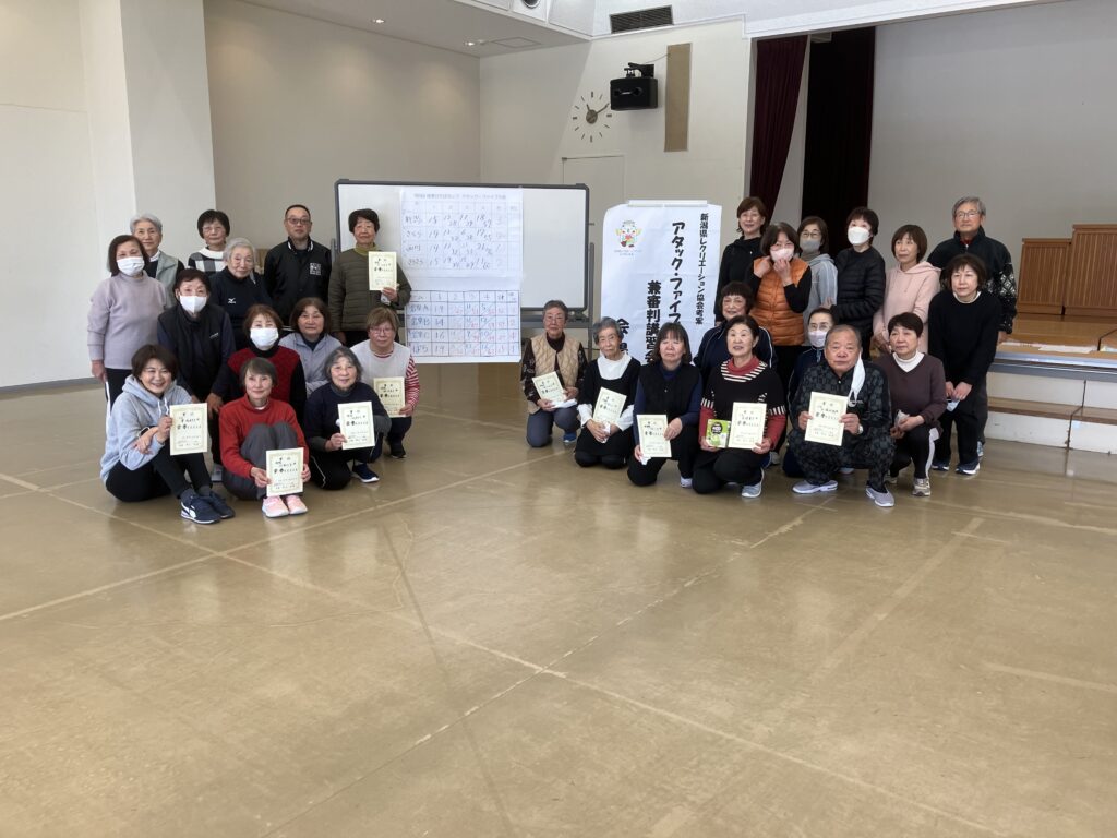 12月6日(土)9:30~ 新潟市西蒲区西川地区公民館にて第5回新潟県アタック・ファイブ大会兼審判養成講習会を開催しました。降雪の予報もあり参加者数を心配しましたが、何とか2コートでの大会と10名を超える審判の養成ができました。西蒲区並びに西川地区公民館様に感謝いたします。次年度は、第3回の全国大会も計画しています。今回の優勝スコアーは76点でしたが、さらに高得点が獲得できるよう各地で練習を重ねてください。
