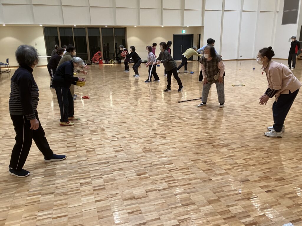 12月9日(火)10:00~ 新潟市西川図書館多目的ホールにて、(公財)日本レクリエーション協会主催「健康スポレクひろば」旗屋スポ・レククラブを開催しました。本日は、チャレンジ・ザ・ゲーム大会でした。新潟県では、中学校で体育の時間の中で体つくりの運動として盛んになりつつあります。そこで、まだまだ負けられないと本日の開催となりました。ニチレクボールに素晴らしい記録が出たので掲載し称えたいと思います。赤川・渡辺・中村チーム31″0、橋本・小林・小林チーム75″7、内藤・樋浦・川﨑チーム76″4でした。80歳で老け込むことはありません。まだ、やれます頑張りましょう。