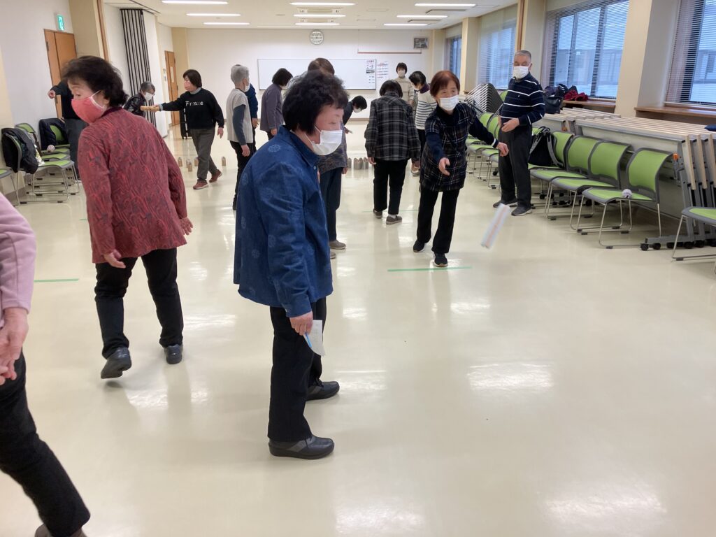 12月25日(木)9:30~ 村上市中央公民館大会議室にて、日本レクリエーション協会主催「健康スポレクひろば」村上健康クラブを開催しました。本日は、2回目のレク式体力チェック終了後は、室内モルックでした。レク式では1年間の成果を見ます。課題が解消されているのか楽しみでもあります。室内モルックでは、村上地域で大会の自主開催を目指します。