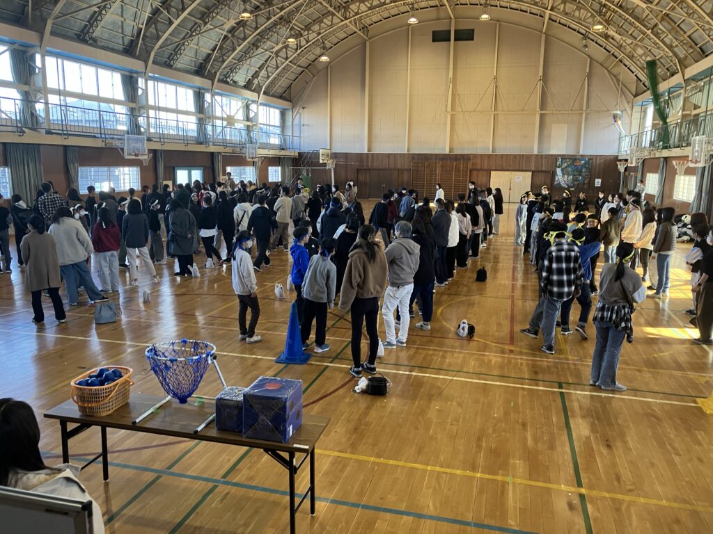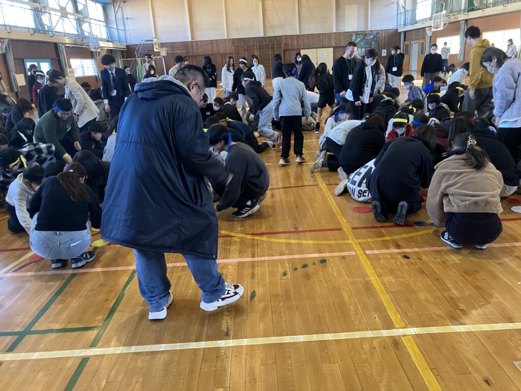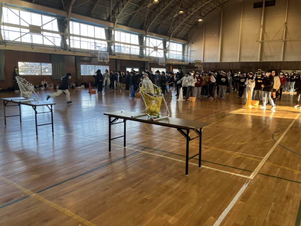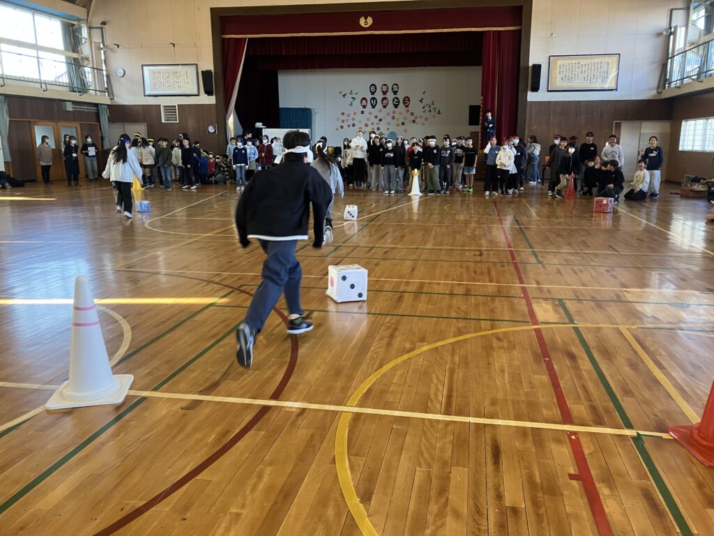 2月20日(金)14:40~ 2月には珍しい快晴の日体育館でPTA事業のお手伝いをしました。はじめに、「間もなく卒業です。みんなで力を合わせて運動するのはおそらく最後です。」「240人の親子が力を合わせて運動することもこれが最後だと思います。」「短い時間ですが、大きな声で応援し、チームのために全力で走ってください。」と士気を高めてスタートしました。ルールを守り終始熱戦が展開し無事終了しました。終了後は、互いに健闘をたたえ合い「楽しかった」と声を掛けていました。