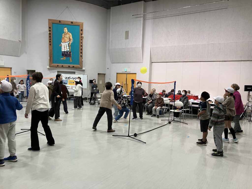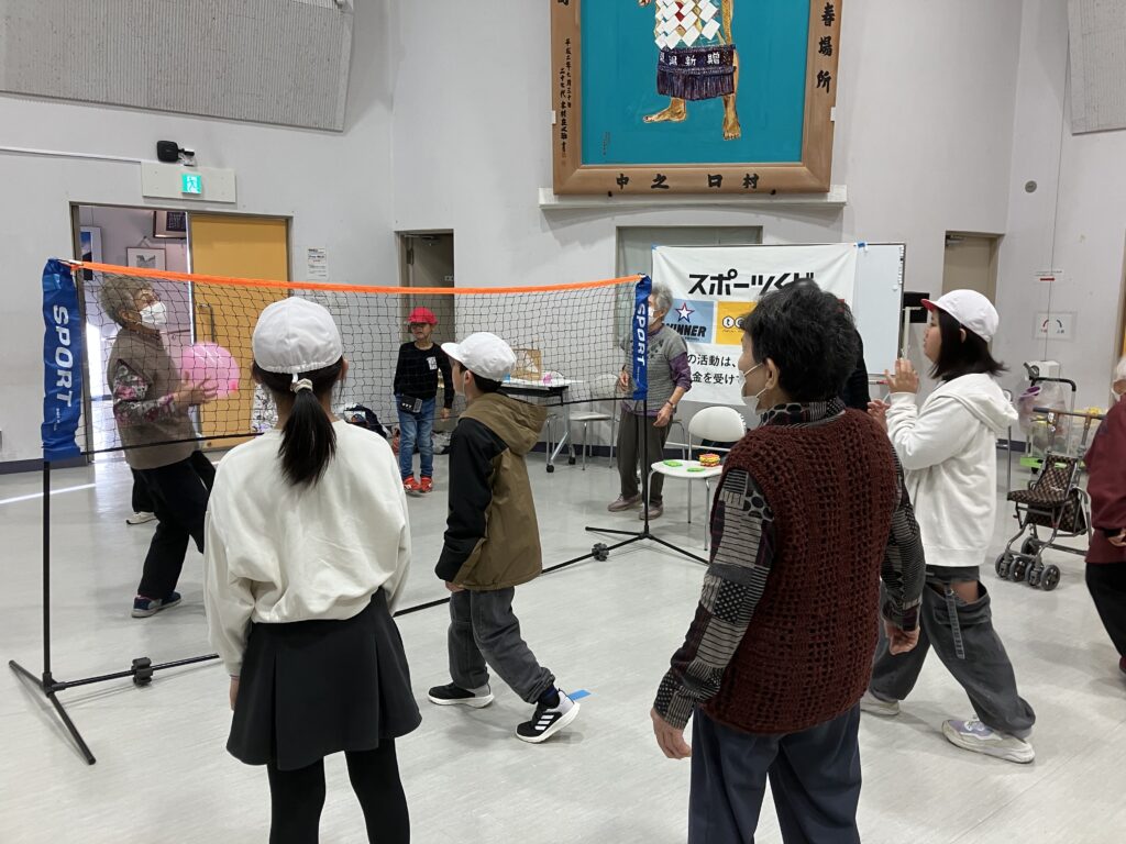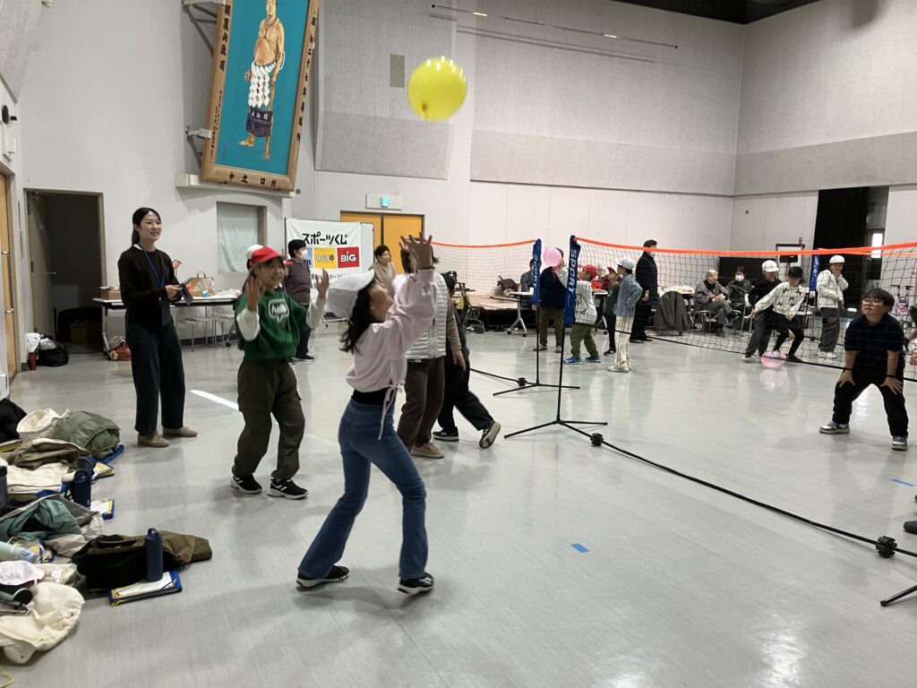11月20日(木)10:00~ 西蒲区中之口地区公民館にて(公財)日本レクリエーション協会主催「健康ひろば」羽黒健康スポレククラブを開催しました。本日は、ふうせんバレーですが中之口西小学校3年生との交流ふうせんバレー大会でした。クラブの皆さんはルールを知っている。(4人制、直径40cmのふうせん、中に0.25gの鈴等)小学生は、初めての体験でしっかりと話を聞きながらやっていました。最終戦のころには、大きな声を出してカバーする様子が見られました。先週は、東小学校の4年生でしたが機会があればまたやりましょう。