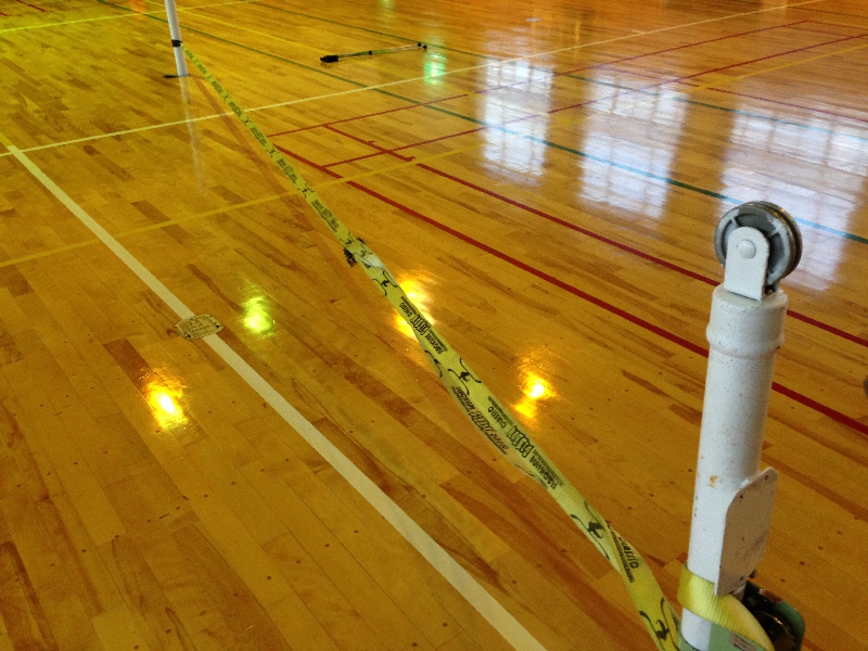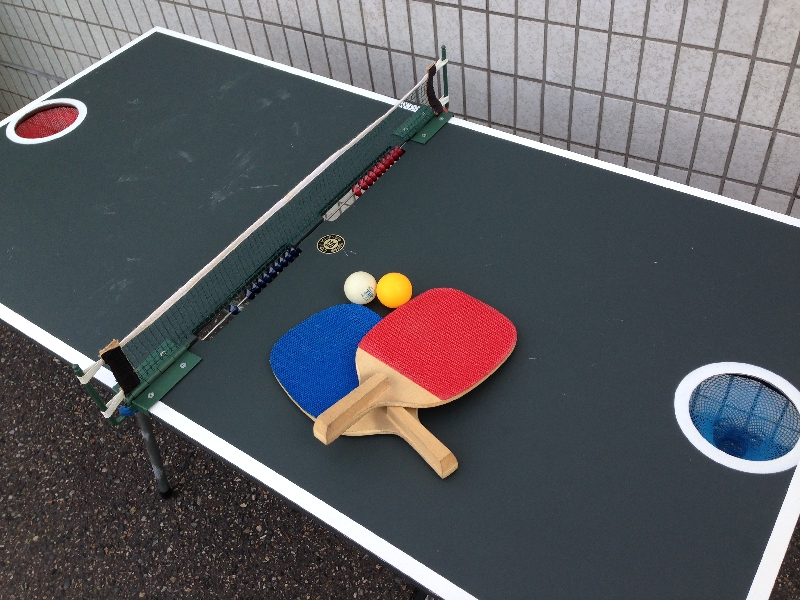 1セット台の両端には穴があいており、バスケットの穴をねらい打ち返します